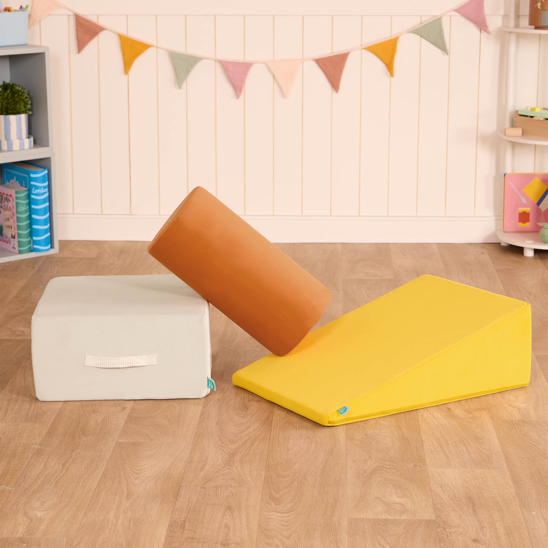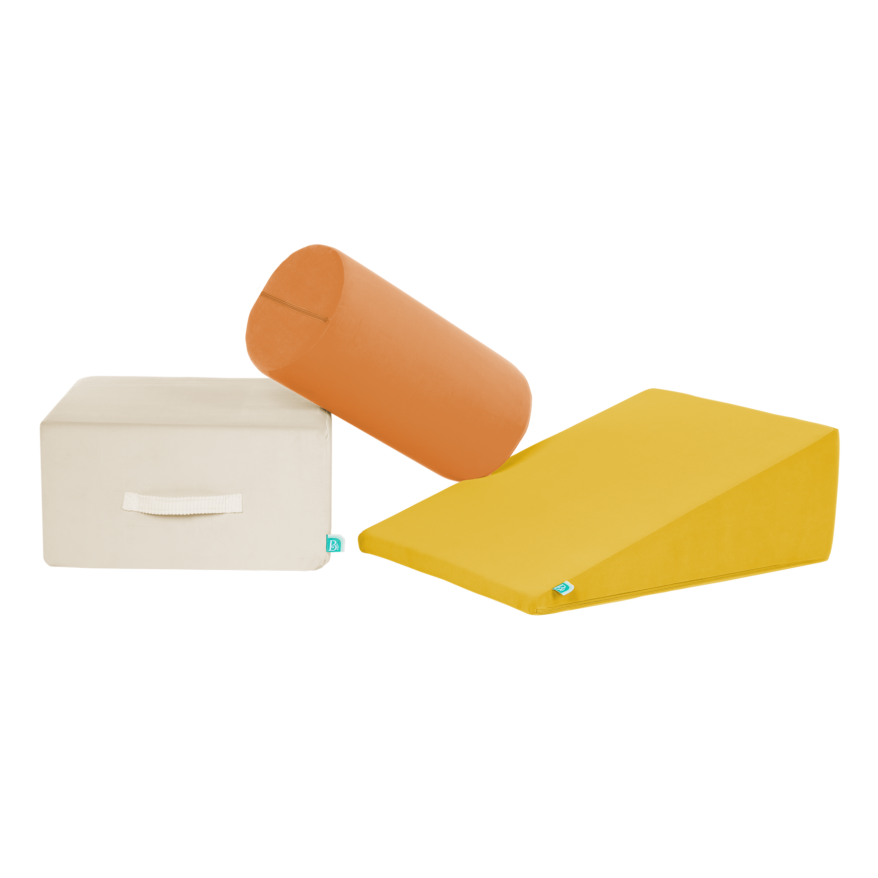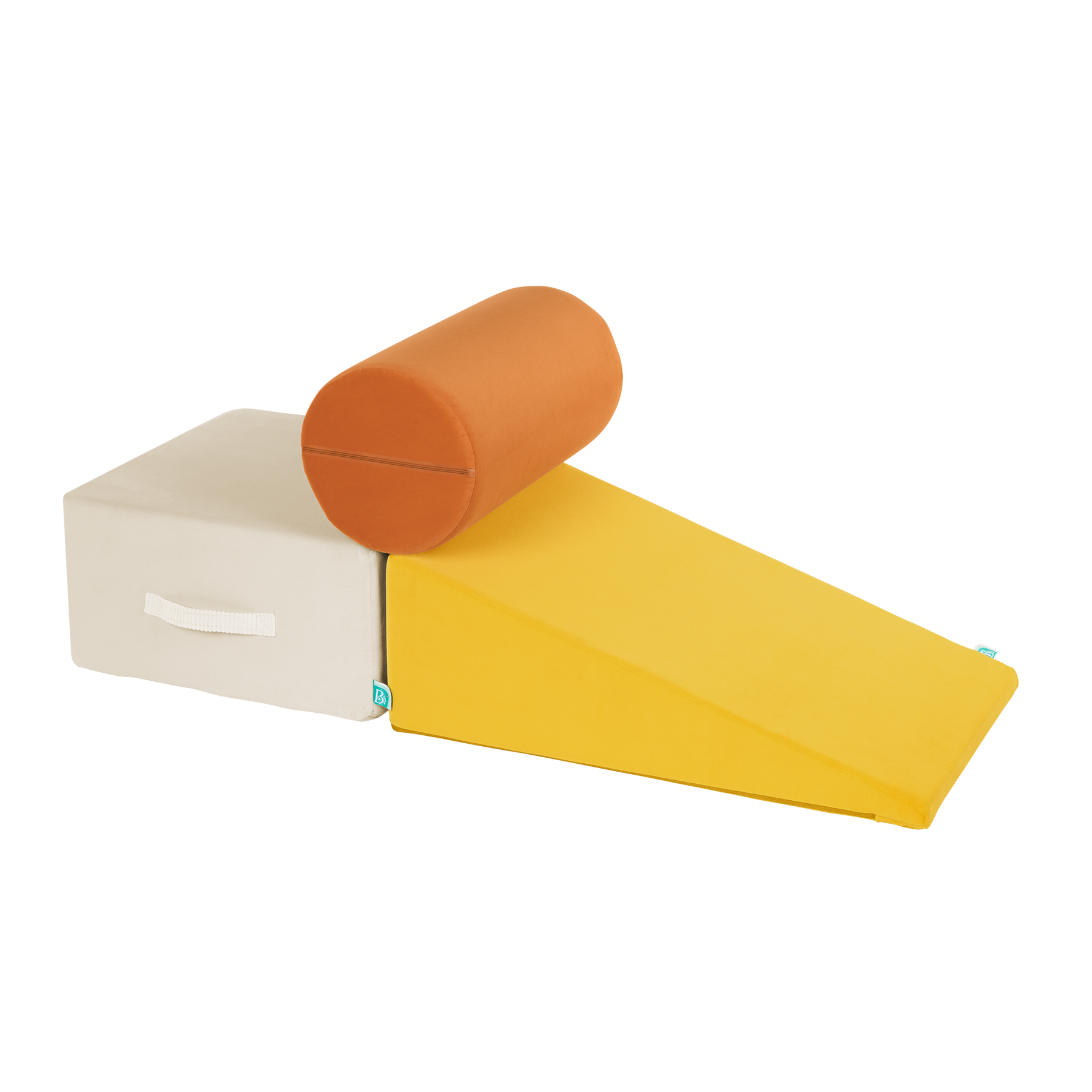 Build, play, and smile with a squishy trio of WonderShapes from B. toys! This 3-piece set of foam shapes includes one plush block, ramp, and cylinder to build and play with! Open 'em up and watch them expand to their full size — just like magic! Stack and place them to create an obstacle courses, or add them on to fun forts for endless possibilities! As kids crawl and clamber over the super-soft shapes, they'll be developing gross motor skills, and this set it a great way to stay active indoors. The machine-washable covers are easy to remove and toss in the wash to keep fresh, and the handles allow kids to easily rearrange their play space any way they please. Recommended for kids 12 months and over.