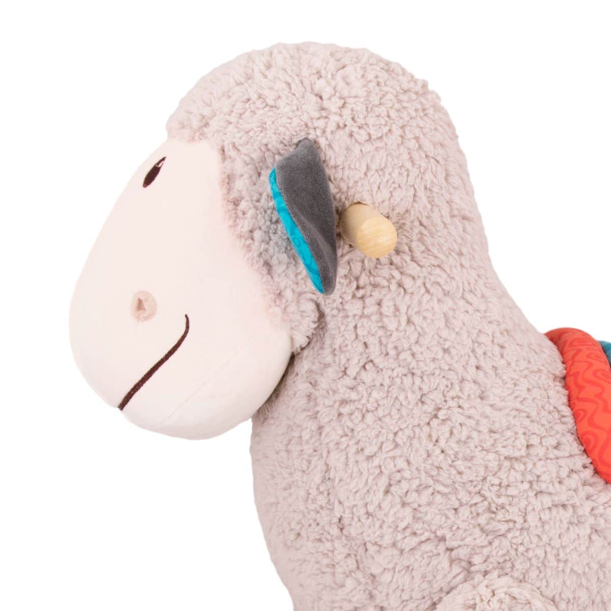 Hop on and take a ride on the Rodeo Rocker - Loopsy from B. toys! This plushy rocking sheep is a timeless playroom companion for toddlers to enjoy. Loopsy is equipped with natural hardwood handles and rockers that give this ride-on toy a classic feel. Settle into the comfy seat, listen to the clip-clop of this sheep's hooves, and turn on your imagination. Enjoy a day at the farm or explore the mountains! And because we at B. keep the environment in mind, parents will also be happy to know that our packaging is recyclable. Recommended for children 18 months and over.